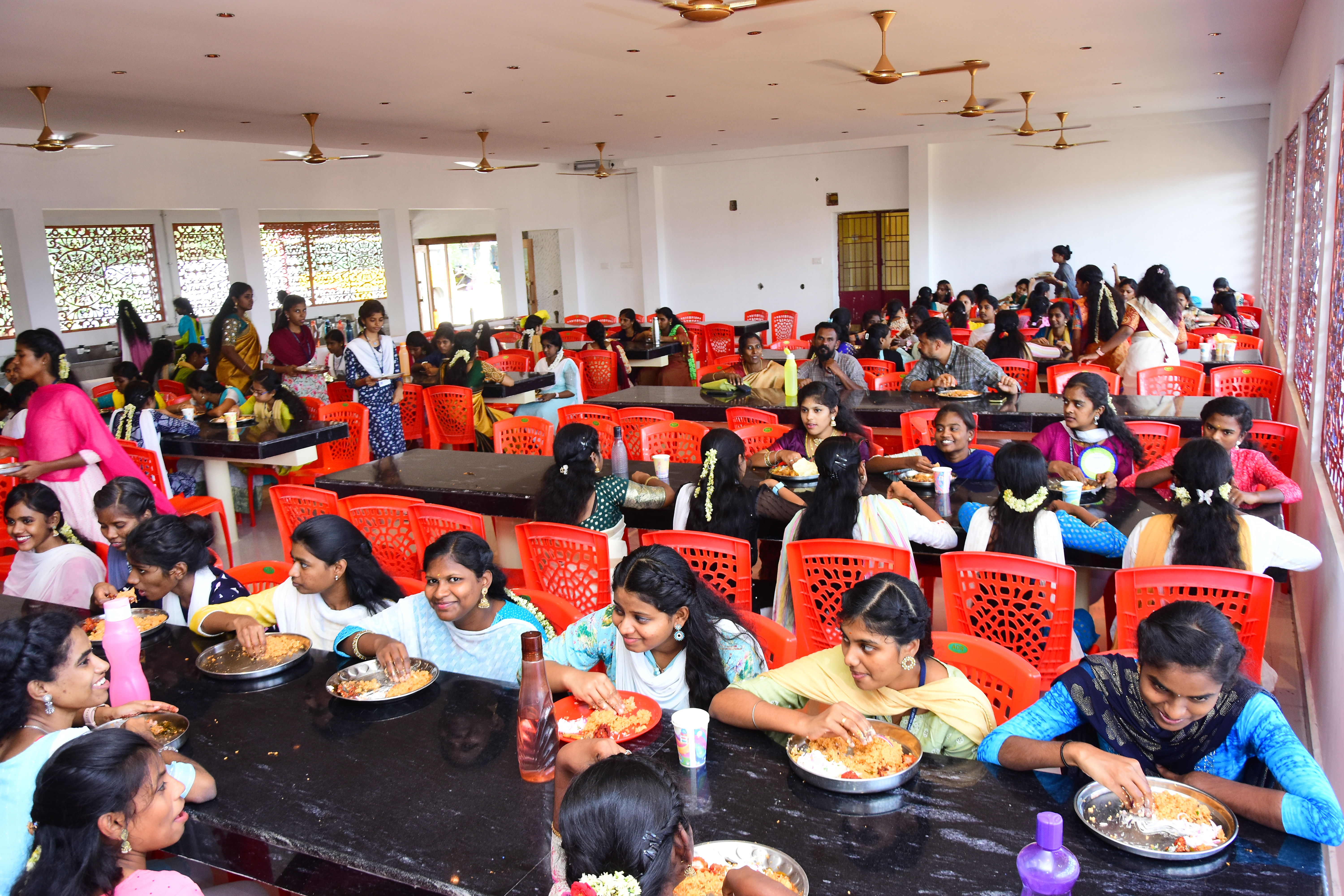served hygienically by trained catering persons. Around 200 students can occupy the Dinning hall at a